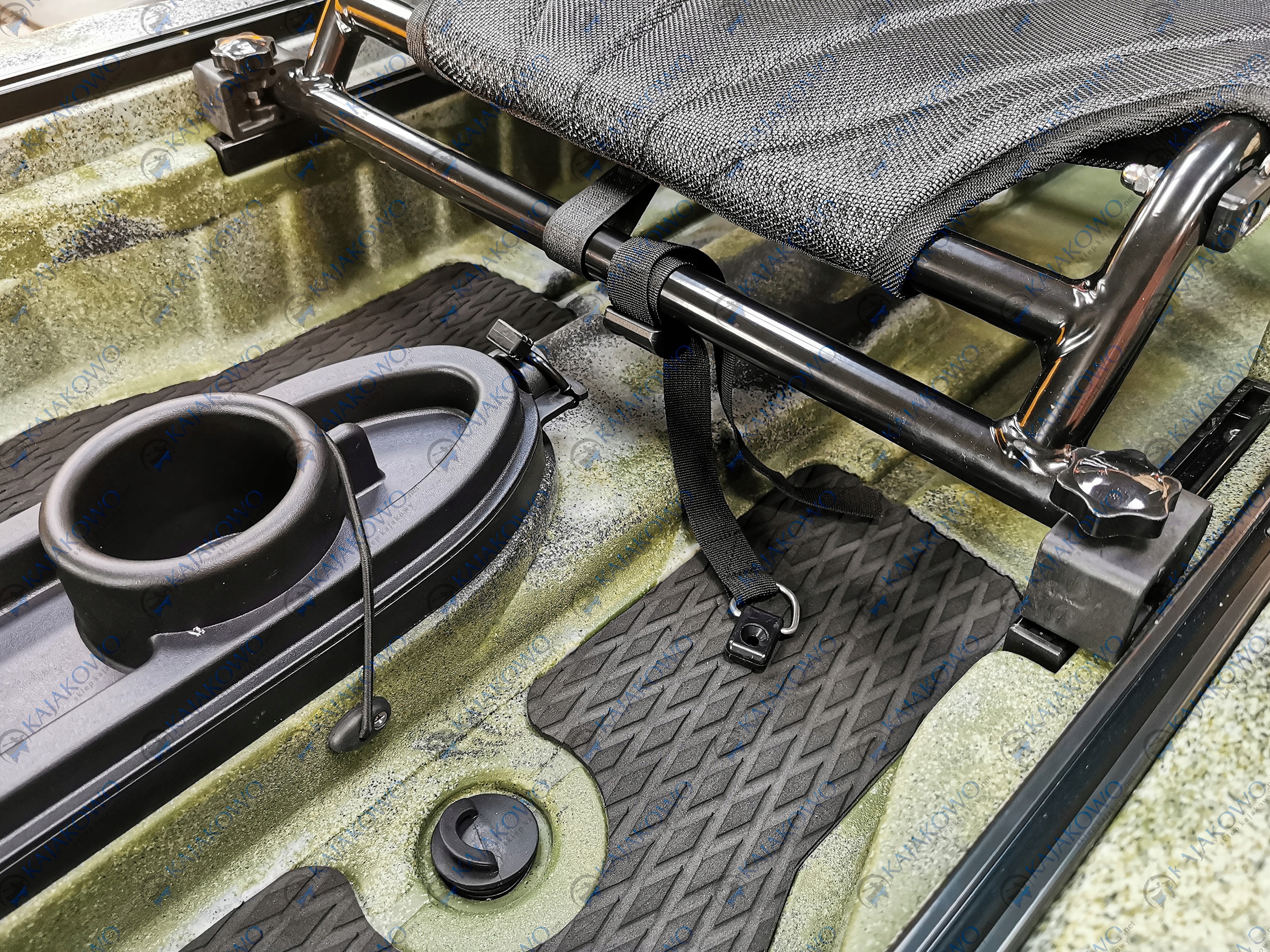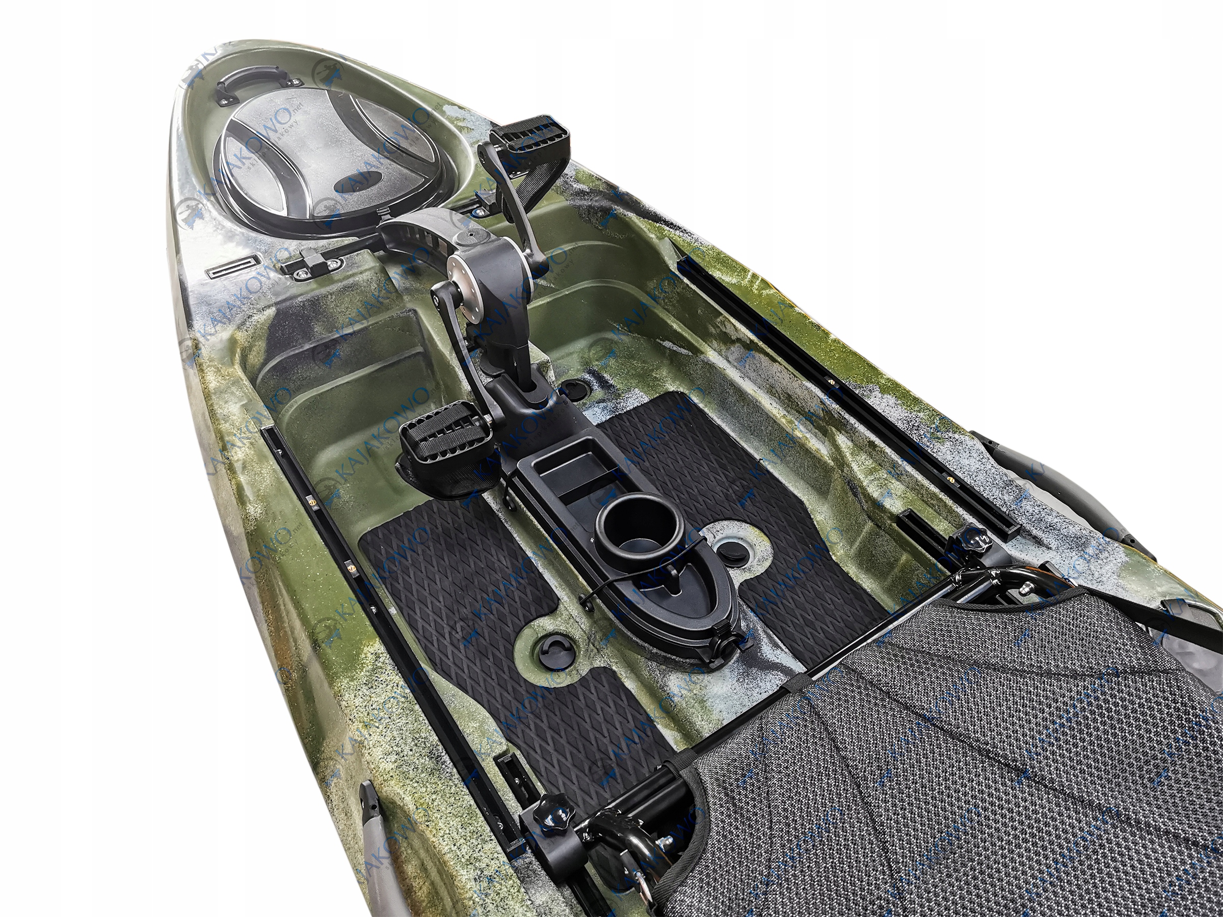Багатофункціональний каяк з ножним приводом довжиною 320 см. Привід дозволяє плавцю мати вільні руки під час купання та риболовлі. Крісло з алюмінієвим каркасом забезпечує більший комфорт під час довгих годин на воді.