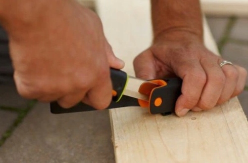 Ніж Fiskars із точилом — це ніж із коротшим лезом із високоякісної сталі для точних різів. Він є частиною серії ножів для майстерень Fiskars, розроблених разом з найвибагливішими користувачами ножів. Інноваційна, вбудована, легка у використанні точилка гарантує гостріші розрізи без непотрібних перерв у роботі.