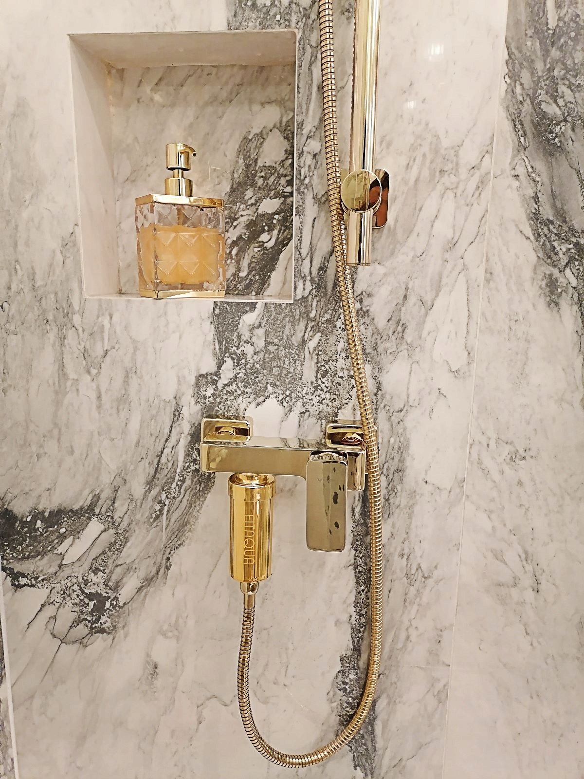 Фільтр для душу/ванної FitAqua золотого кольору - сучасний і простий у встановленні!