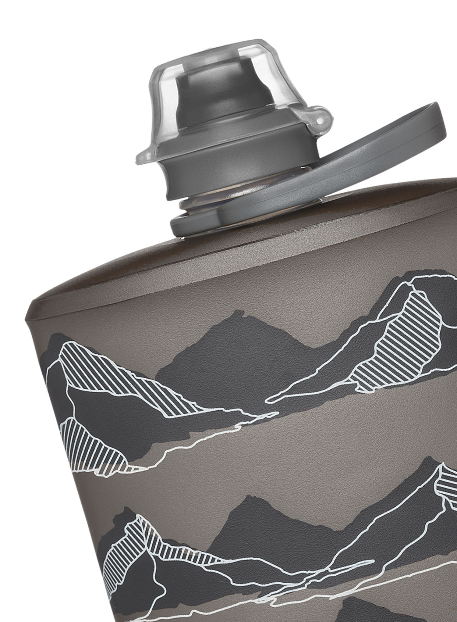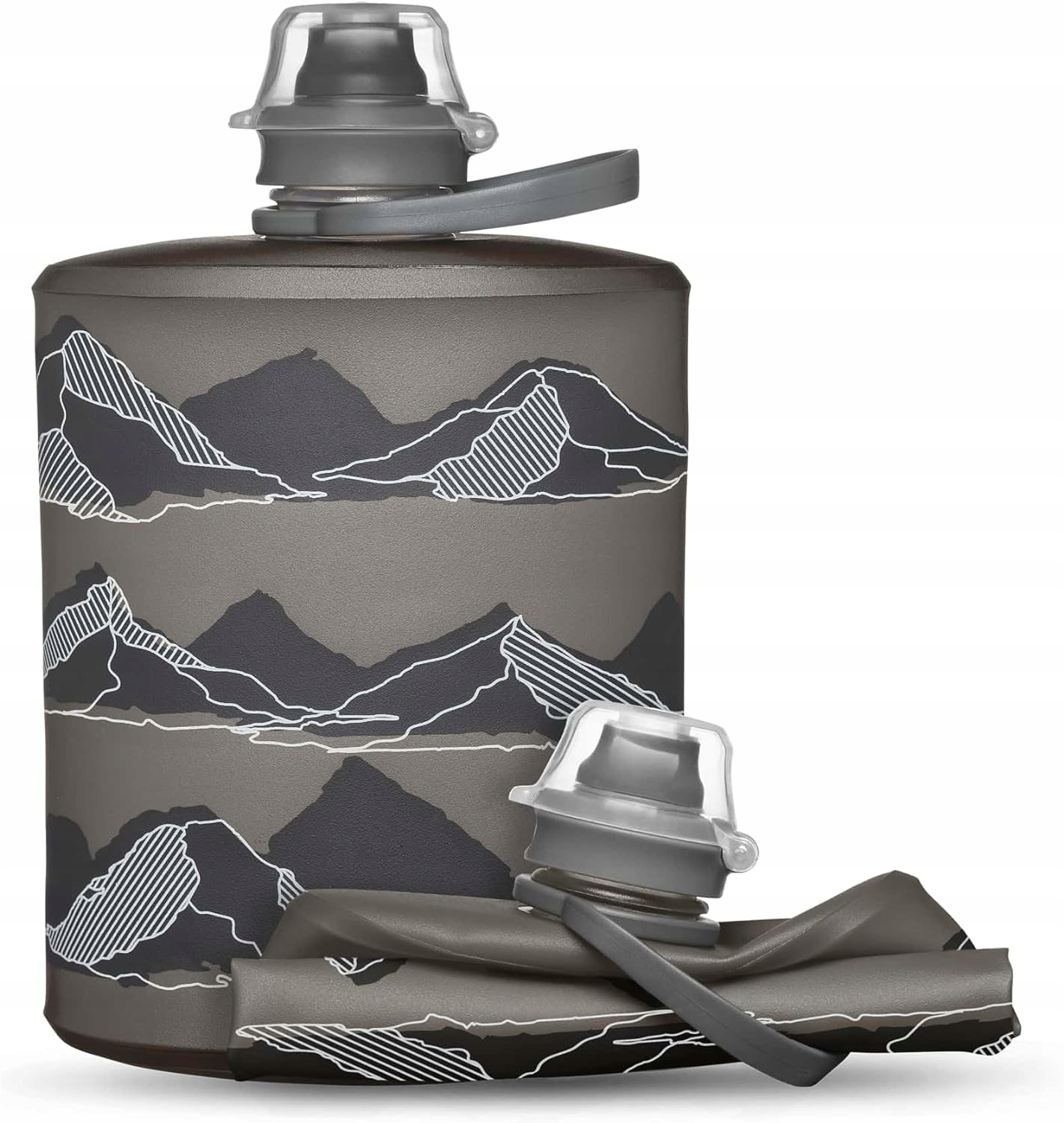 Пляшка HydraPak Mountain Stow 500 мл - мамонтово-сірий - це зручна і безперечно легша альтернатива класичним, «жорстким» пляшкам. Коли він порожній, він складається до невеликого розміру. Гірська графіка припаде до смаку любителям пригод на природі.