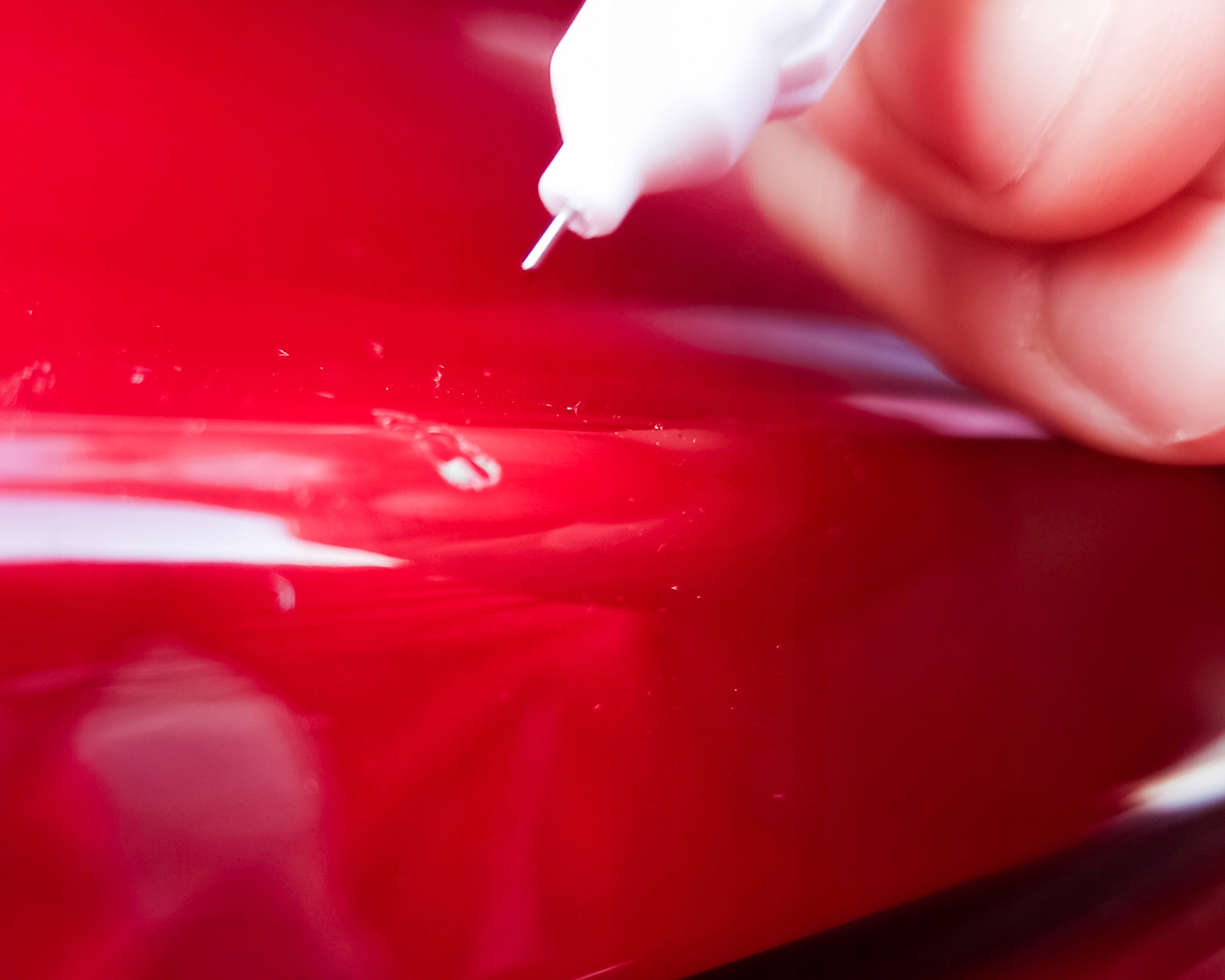 Голка ідеально підходить для точного заповнення навіть найменших пошкоджень, а щіточка, загвинчена в ковпачок, допоможе вам покрити більші тріски.