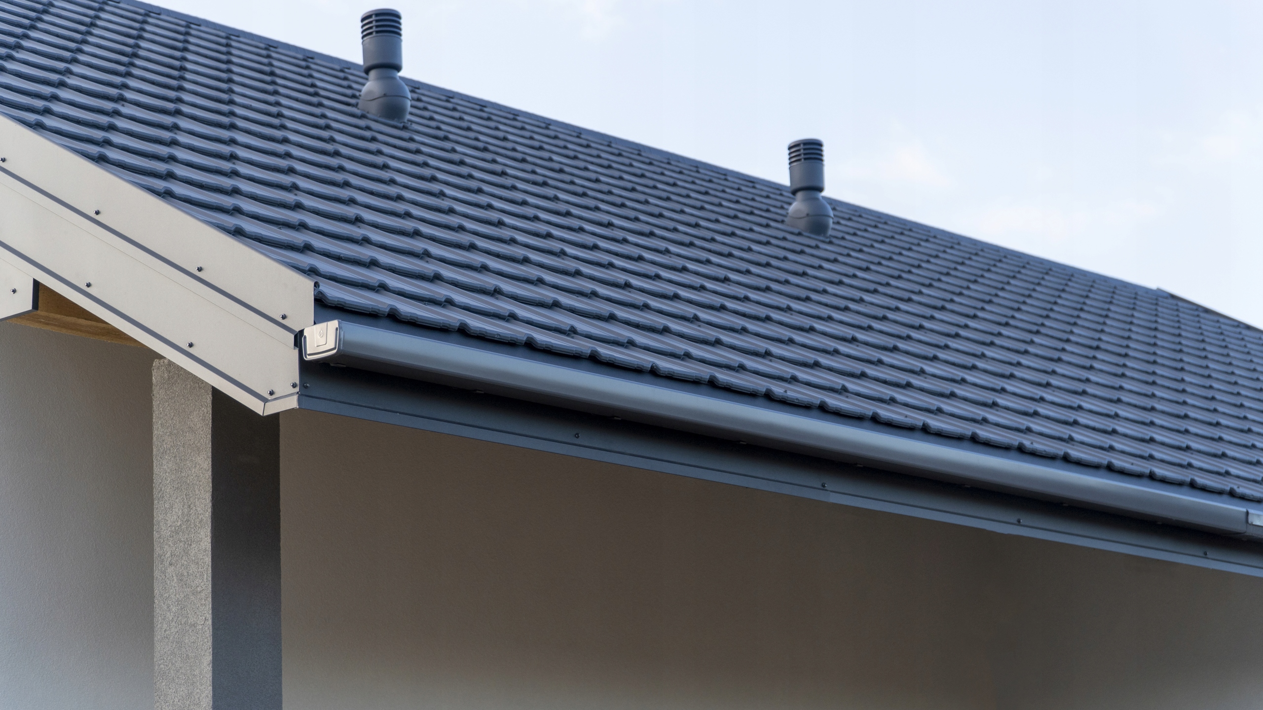 Flamingo iQ - сталевий квадратний жолоб з прихованим кріпленням. Ідеально підходить для всіх типів дахів. Ідеально вписується як у сучасний дизайн будинків, наприклад, сучасний сарай, так і в класичному стилі.