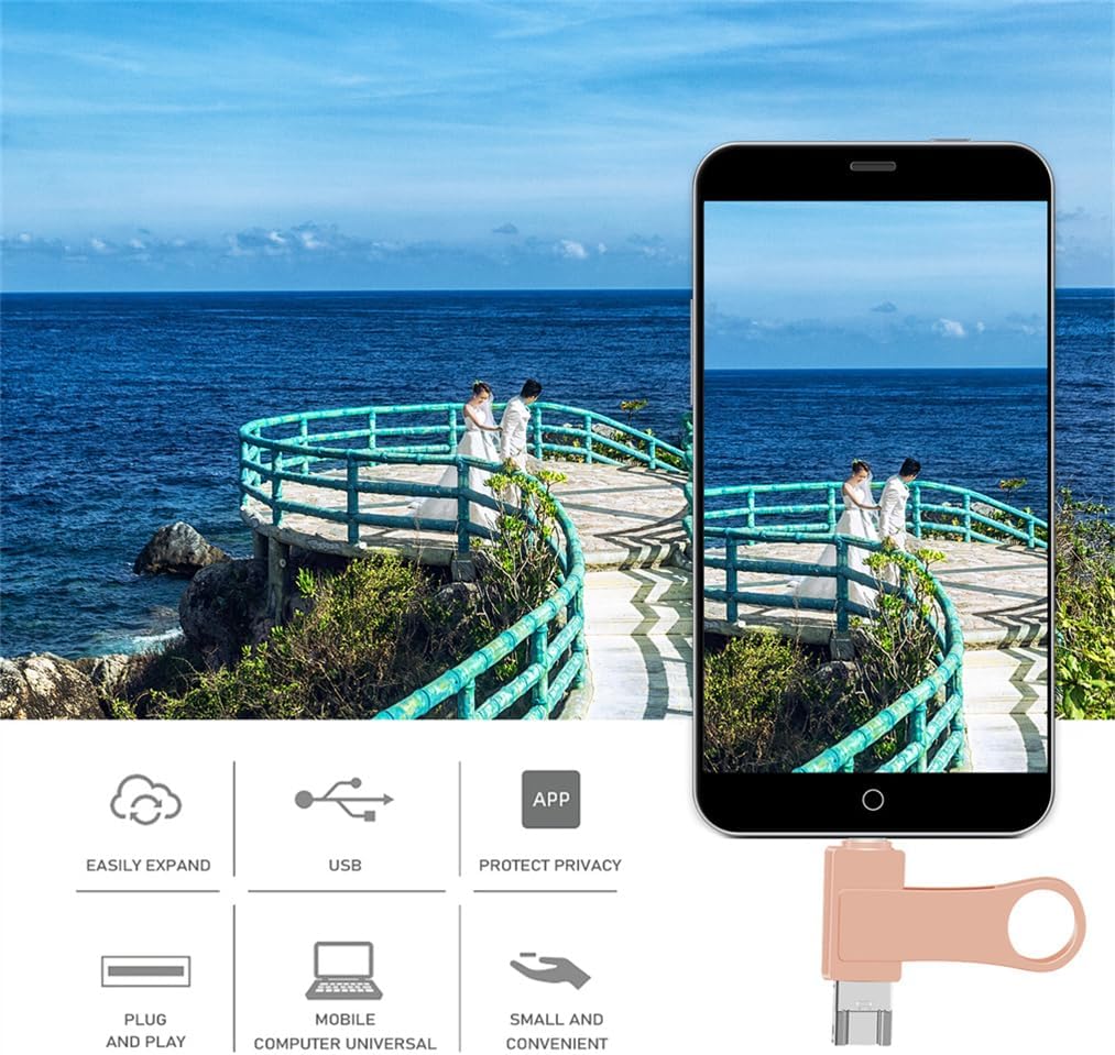 Plug and Play: Просто підключіть флеш-накопичувач, щоб розпочати передачу фотографій і відео на смартфон.