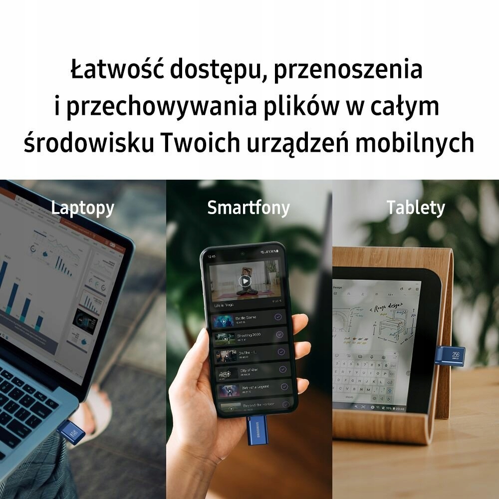 Інтерфейси USB-C всюди, і ваш флеш-накопичувач Samsung MUF-256DA/APC супроводжуватиме вас там. Це кишеньковий гаджет, сумісний з усім: ноутбуками, планшетами, смартфонами, фотоапаратами... Він зручний і дозволяє швидко та надійно передавати дані. У 256 ГБ пам’яті можна легко зберегти приблизно 63 730 фотографій¹ або до 12 годин відео з якістю 4K².