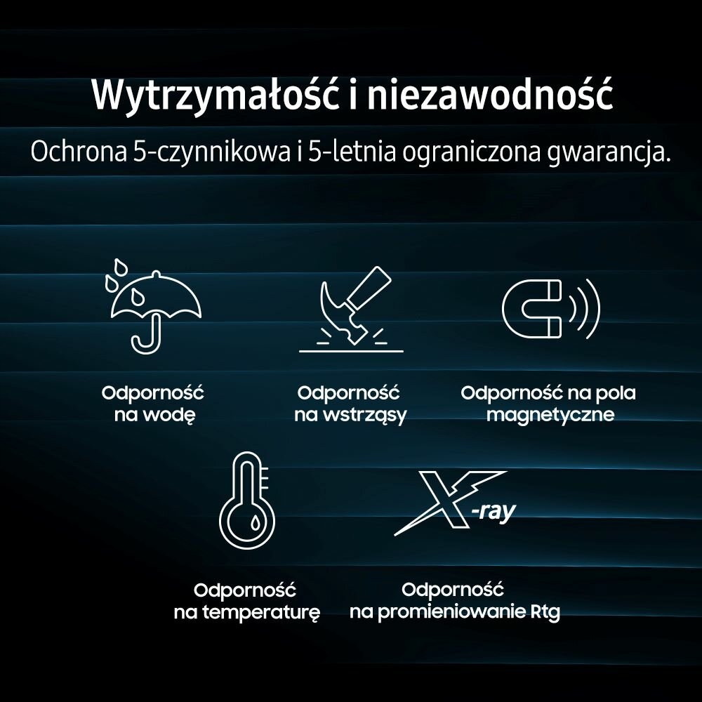 Вам не потрібно вибирати між продуктивністю та надійністю. Відкрийте для себе швидку та потужну пам’ять Samsung MUF-256DA/APC, здатну передати файл розміром 4 ГБ лише за 11 секунд¹, тобто зі швидкістю читання 400 МБ/с². Вона виготовлена відповідно до стандарту USB 3.1,3 але має зворотну сумісність зі стандартами USB 3.0 і 2.0. Це флеш-пам’ять NAND, якість якої гарантує Samsung.