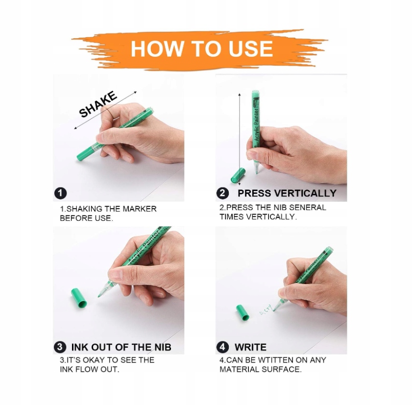 Підходить для : графіті, написів, каліграфії, дизайну та малювання на полотні, а також для багатьох виробів ручної роботи та декорацій.