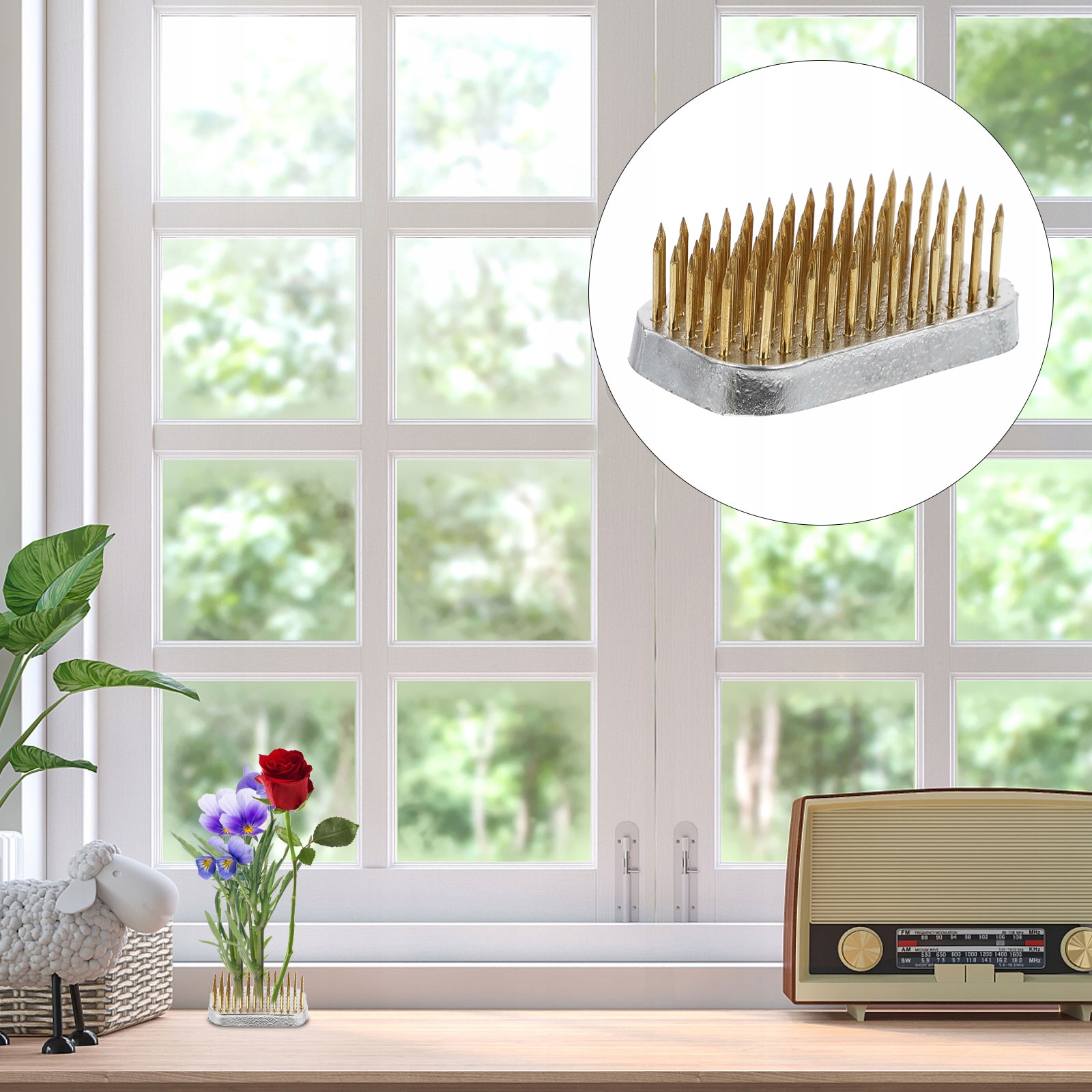 ✅Голки ефективно утримують квіти вертикально та в правильному положенні. Це допомагає довше зберігати воду чистою, а квітку красивою. Легко адаптується до більшості типів ваз, може зменшити витрату інших матеріалів.