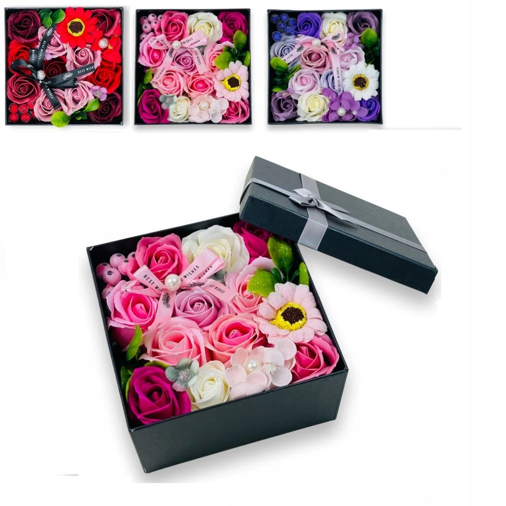 FLOWERBOX Z KWIATAMI MYDLANYMI PREZENT PUDEŁKO UPOMINEK KWIATY RÓŻE MYDLANE