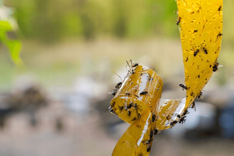 Пастку не слід вішати на сонячні місця. Після розгортання ємність з клеєм виконує роль обважнювача, який перешкоджає скочуванню та злипанню клею. Липка пастка для комах є ефективним і перевіреним методом контролю та позбавлення від мух вдома чи в саду.