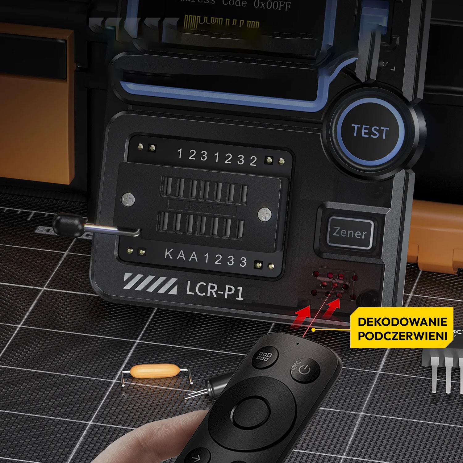 Fnirsi LCR-P1-це універсальний тестер, призначений для точних вимірювань індуктивності, потужності та опору, ідеально підходить для інженерів, техніків та любителів. Він має 1,44 -дюймовий РК -екран і дозволяє перевірити широкий спектр компонентів, таких як конденсатори, PNP -транзистори, NPN, JFET, MOSFET, Tyristors, Diodes Zener та регулятори напруги. Оснащений функцією декодування сигналу ІЧ протоколу NEC, USB-C-C-C для зарядки та оновлення та акумулятор 300 мАг, забезпечує мобільність та зручність. Автоматично розпізнає компоненти та їх параметри, що спрощує послугу та мінімізує ризик помилок.