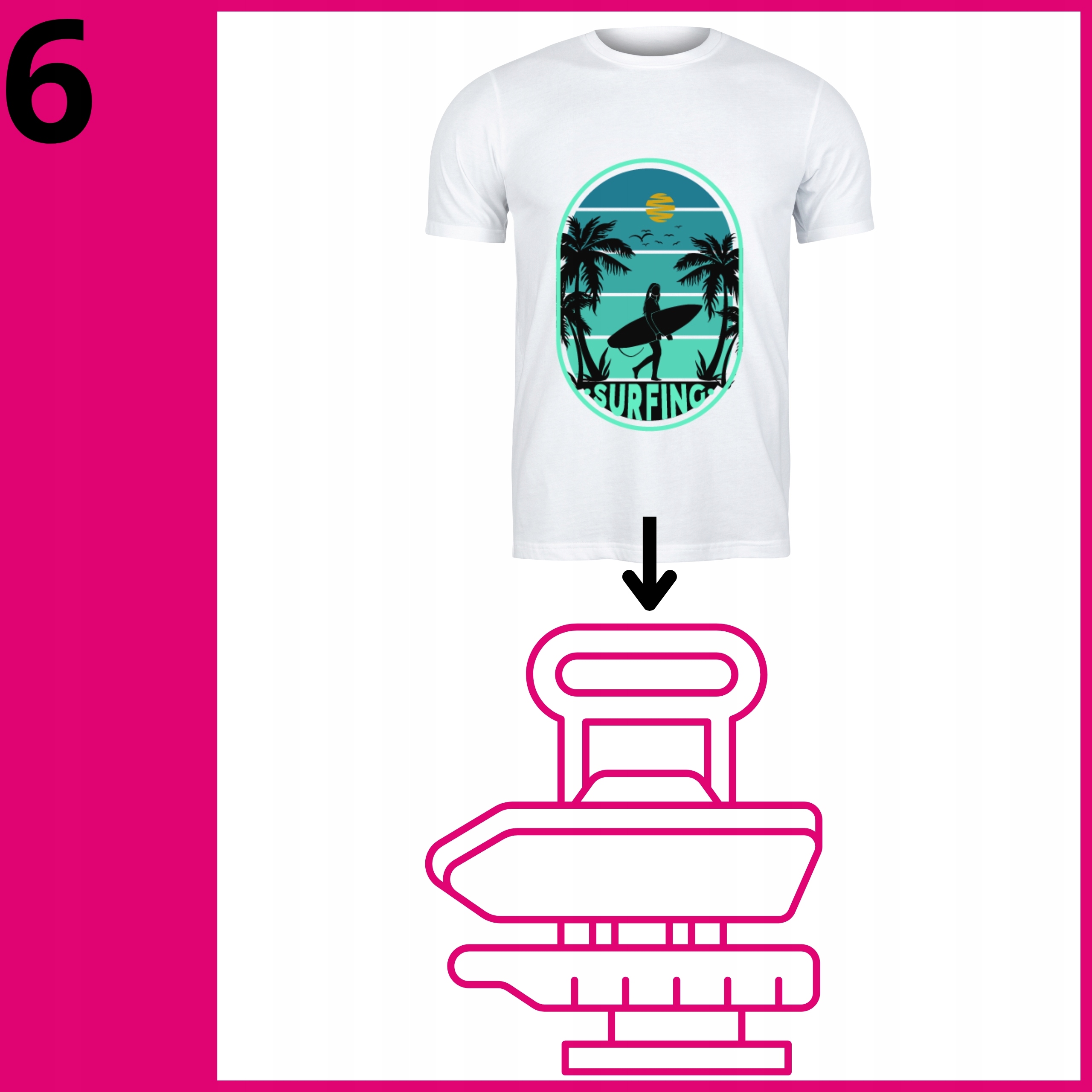 4️⃣Нагрійте малюнок на тканині за допомогою термопреса: 145-150°C 8-10 секунд, тиск 4-5 кг.