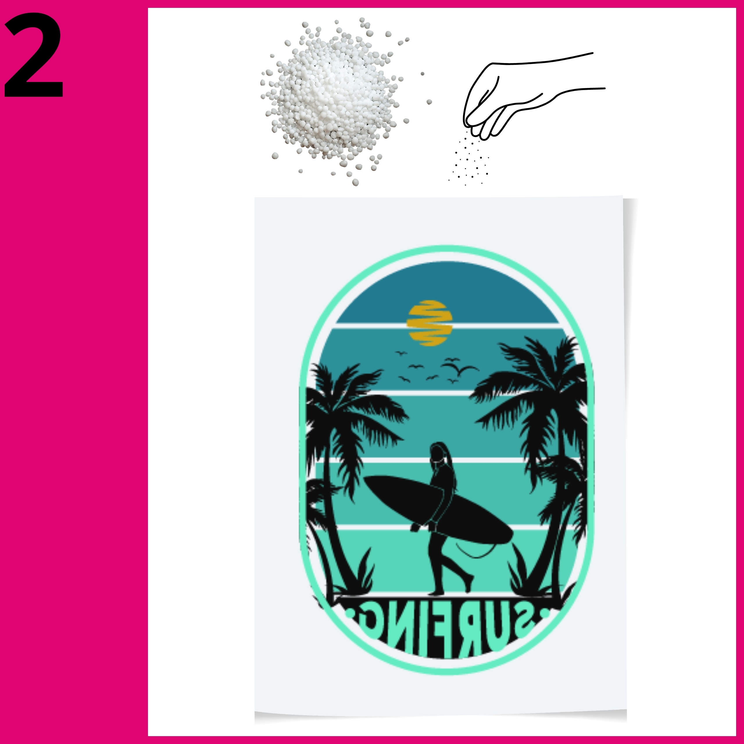 2️⃣Ретельно посипте надруковану графіку клейовим порошком, а потім струсіть надлишки порошку.