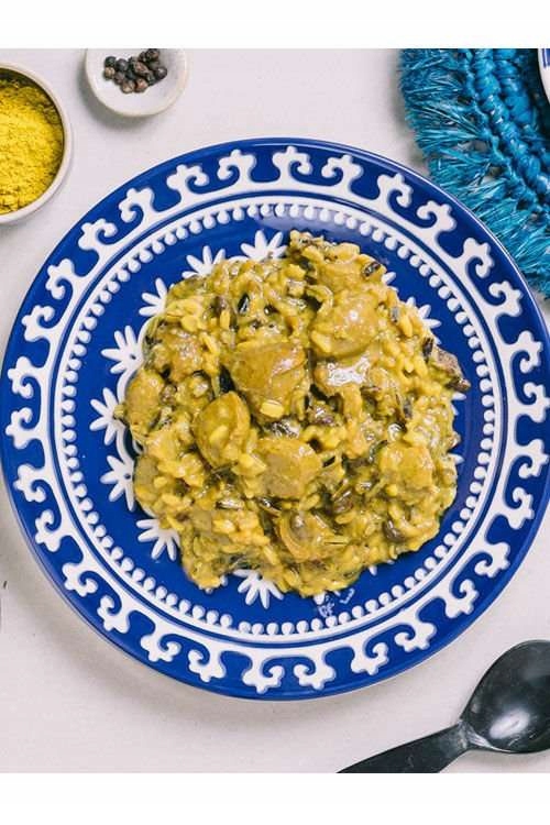 м'який соєвий каррі з соєвими кубиками та сумішшю диких та довгих ролей, які не мають великої страви для м'яса, а не на кухні, а також на кухні, а також на кухні. меню. Ця ароматна, приємно зігріваюча страва дозволить вам скуштувати в далекі східні аромати, принесені прямо з Індії.