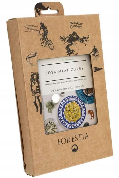 Forestia виробляє свою продукцію з максимальною увагою до свіжості. Постачальники ретельно обирають за суворими екологічними критеріями. Упаковка частково виготовлена з перероблених матеріалів та 100% переробленої. Бренд відкидає використання транс -жирів, генетично модифікованої їжі, консервантів, підсилювачів штучного аромату та барвників. Їжа здійснюється мріями закоханих активного способу життя, пропонуючи повний набір, який містить усе, що вам потрібно, щоб насолодитися смачною, гарячою їжею. Набір включає нагрівач, який дозволяє нагріти їжу, не використовуючи плиту або освітлювати багаття. Форестія також можна готувати в горщику (7 - 8 хв) або в мікрохвильовій печі (2 хв; 750 Вт).