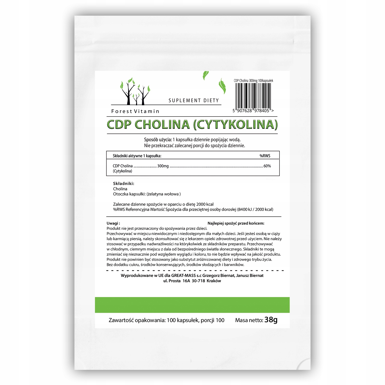 FOREST CDP CHOLINA CYTYKOLINA 100 kaps PAMIĘĆ KONCENTRACJA ENERGIA