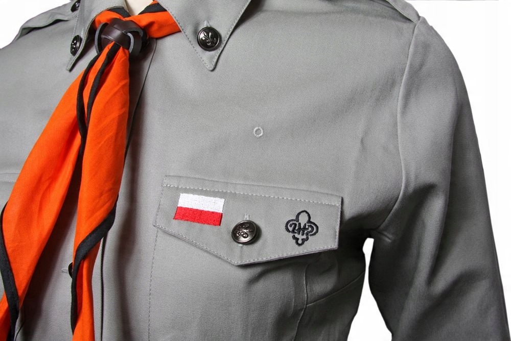 Для дівчинки підберемо сіру сорочку, а для хлопчика зелену - кольору хакі. На момент купівлі на форменній сорочці ZHP на лівій кишені нашитий прапор Польщі та логотип ZHP – характерна лілія.