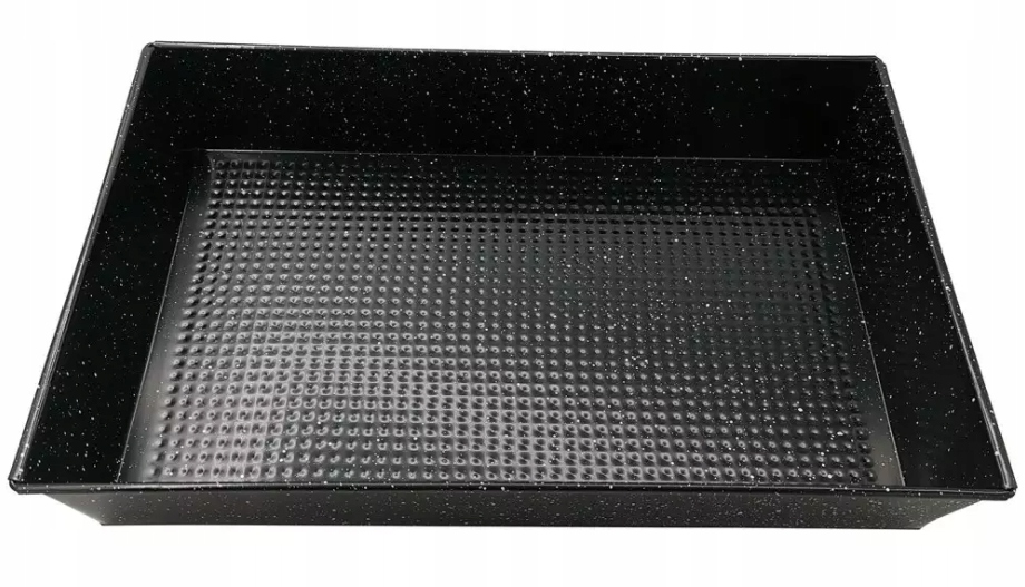 Відкрийте для себе наше прямокутне деко розміром 39,5 x 23,8 см, виготовлене з вуглецевої сталі з антипригарним покриттям. Це ідеальний інструмент для випікання тортів і десертів, забезпечуючи чудовий розподіл тепла та легке очищення. Лоток має фактурне дно і підходить для зберігання продуктів в холодильнику. Його унікальна поверхня забезпечує ефективний захист від прилипання їжі. Ми рекомендуємо прати вручну та уникати гострих предметів, щоб зберегти його довговічність. Рекомендується для щоденного використання на кухні та стійкий до високих температур. Дозвольте собі вразити функціональність цього дека та розширити свої кулінарні можливості.