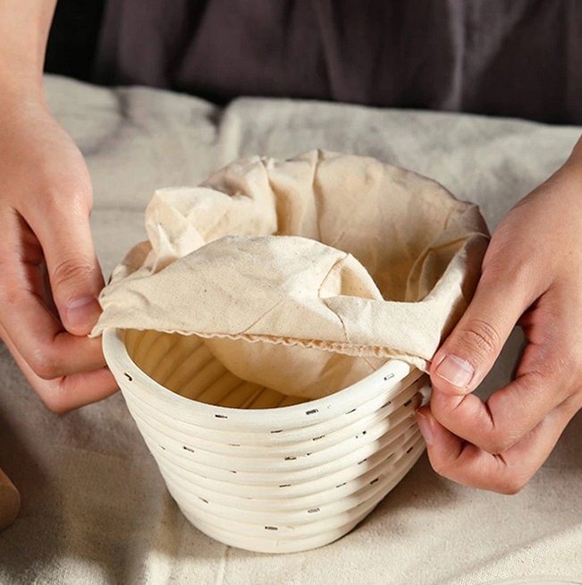 - Кожен кошик оснащений знімною тканинною кришкою, щоб тісто вільно дихало під час підйому