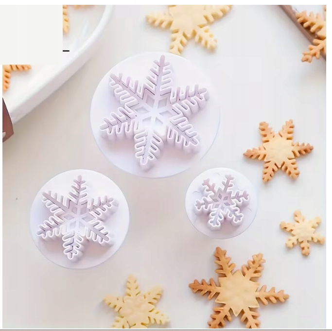 Почуйте зимову магію своєї випічки з набором із 6 поршневих форм у формі сніжинок! Ідеально підходить для прикраси тортів, печива, пряників і роботи з помадкою, марципаном або пластиліном.