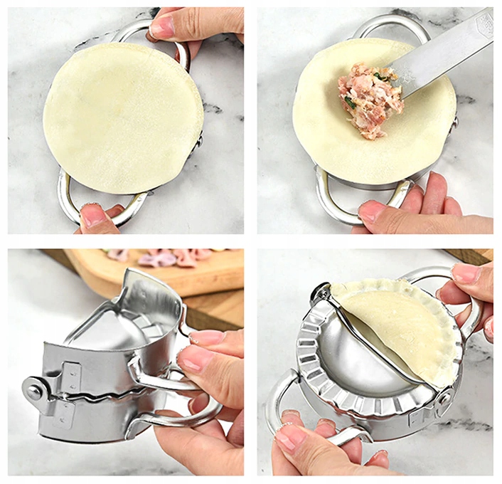 Форма для приготування вареників, пельменів і пельменів діаметром 7,5 см - це надійний пристрій 2 в 1 Перший Функція – куттер, за допомогою якого можна приготувати ідеальні шматочки тіста, друга функція – це затискач, який дозволяє точно з’єднати нарізані шматочки тіста в готовий вареник з начинкою всередині.
