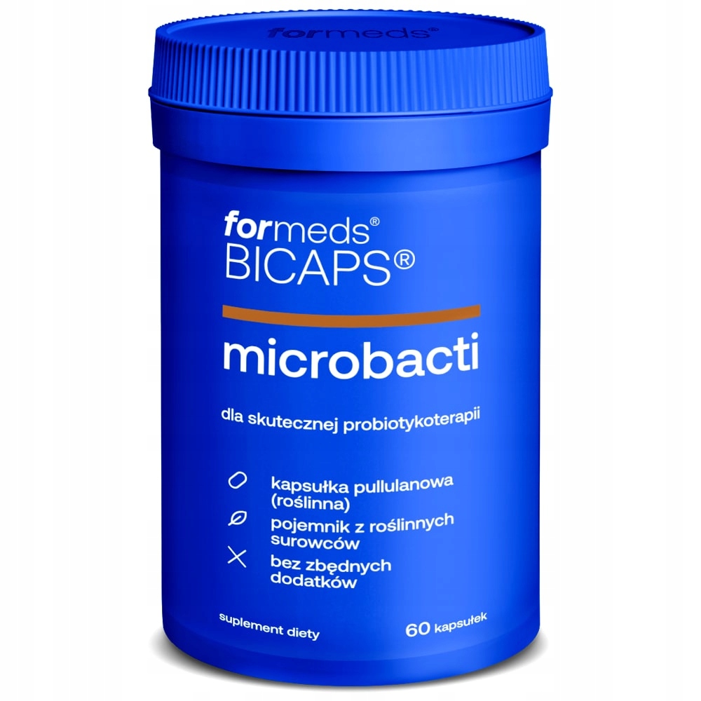 Formeds BICAPS MicroBACTI – це дієтична добавка, що містить запатентовану суміш MicroBACTI, яка поєднує чотири мікрокапсульовані штами бактерій: Lactobacillus acidophilus LA02, Lactobacillus casei ssp. rhamnosus GG ATCC 53103, Bifidobacterium animalis ssp. lactis BS01 і Bacillus coagulans MTCC 5724. Завдяки технології мікрокапсулювання бактерії залишаються стабільними та захищені від впливу рідин організму, що сприяє їх ефективності в кишечнику.