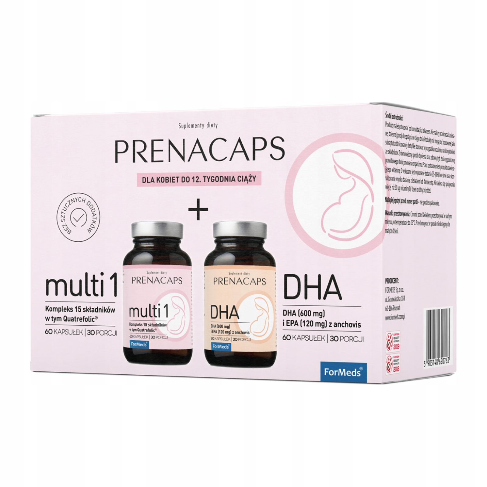 ПРЕНАКАПС - це лінія дієтичних добавок, призначена для жінок, які планують завагітніти, під час вагітності та годування груддю. PRENACAPS MULTI 1 + DHAце комплекс із 17 інгредієнтівдля жінок до 12-го тижня вагітності.