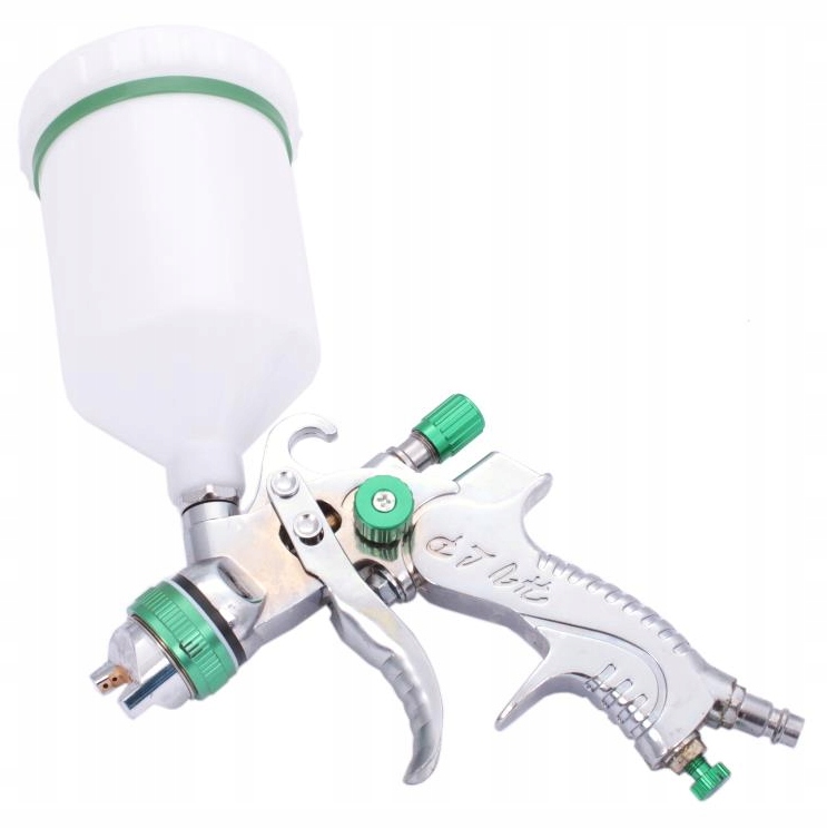Фарбувальні пістолети низького тиску HVLP використовуються для нанесення лакофарбових матеріалів за допомогою стисненого повітря. Корпус виготовлений з алюмінію, верхній резервуар виготовлений із пластику, що робить його легким та ергономічним. Має регулювання кількості матеріалу, що подається, потоку і тиску. У набір входить сервісний ключ, щітка для чищення та фільтр.