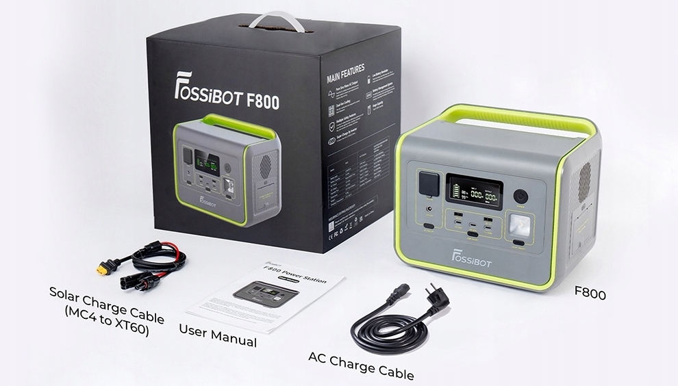 Завдяки двонаправленій інверторній технології FOSSiBOT F800 можна повністю використовувати протягом 1,5 годин за допомогою одного зарядного адаптера змінного струму без необхідності використання додаткового адаптера.
