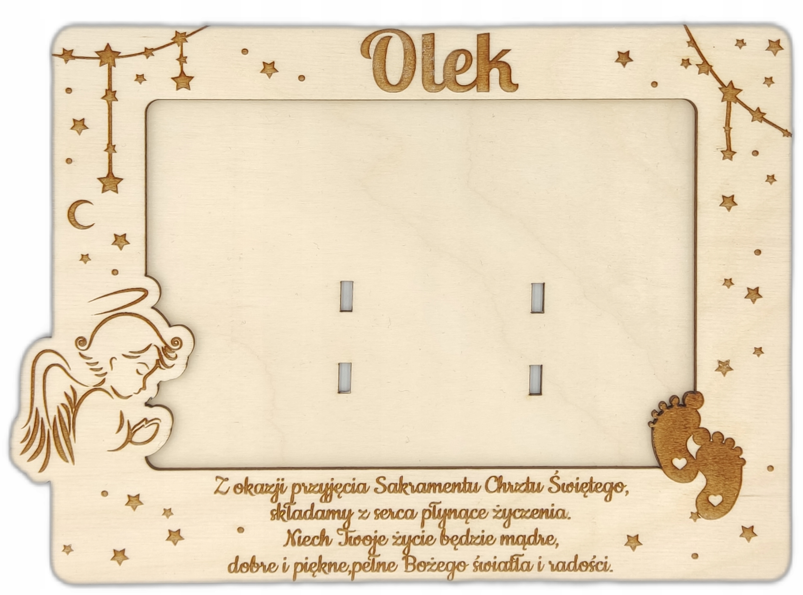 Дерев’яна, гравірована рамка - це ідеальна прикраса для дитячої кімнати, а також чудовий подарунок для близьких людей, для батьків, хрещених батьків чи бабусь і дідусів. 4