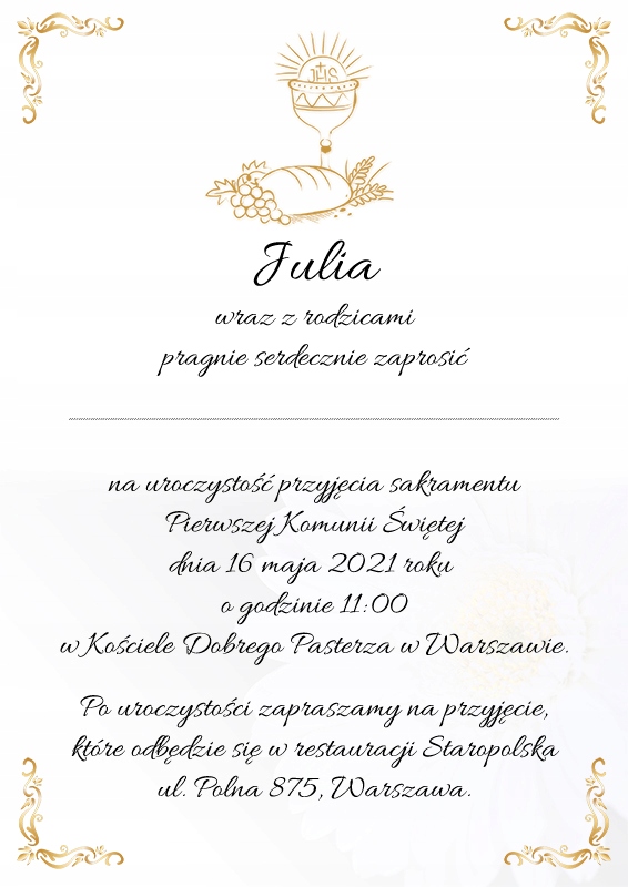 Пропонуємо запрошення на Перше Причастя з фото та персоналізацією даних