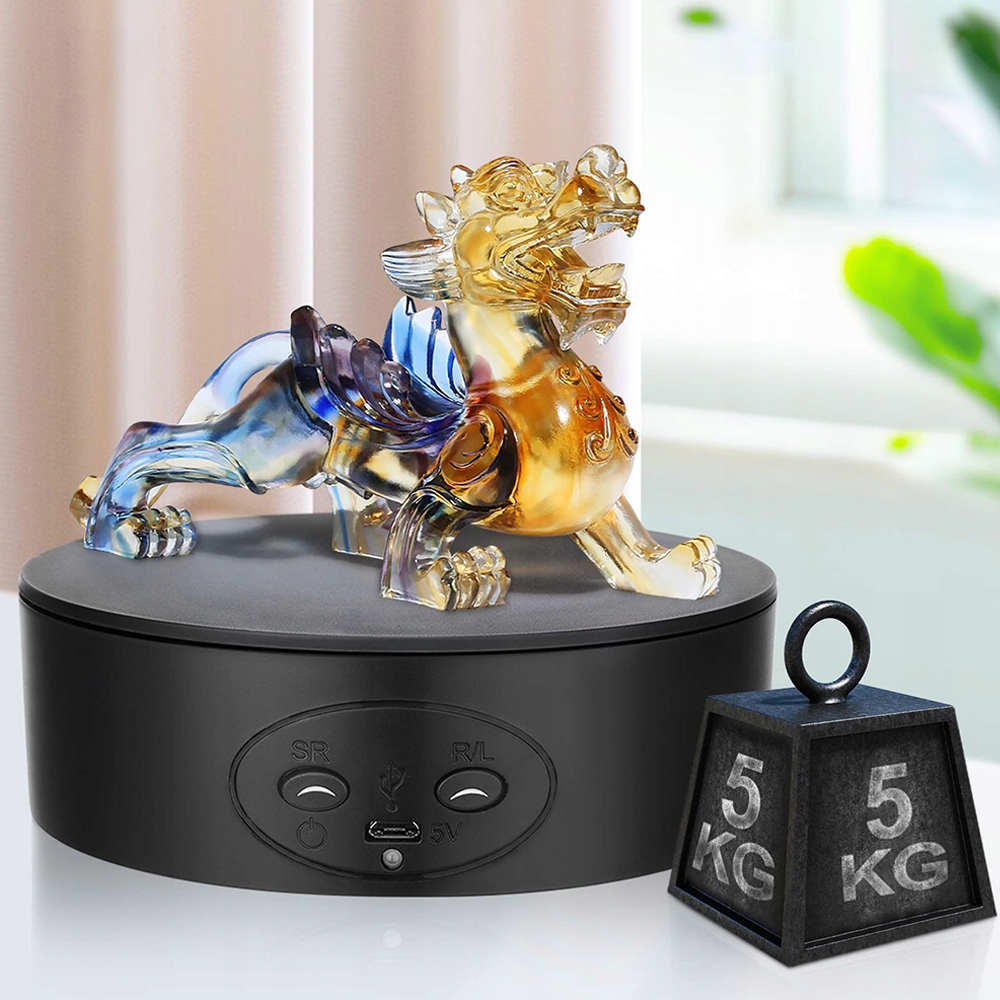 - 5,1-дюймовий поворотний дисплейний стенд із вантажопідйомністю 13,2 фунтів, широко використовується для тематичних виставок, ювелірних виробів, вітрин у магазинах, особливо дисплеїв з епоксидними блискітками. Надайте клієнтам 360-градусний огляд, дозволивши фотографам робити фотографії з 360-градусним оглядом, щоб посилити ефект від ваших художніх виробів.