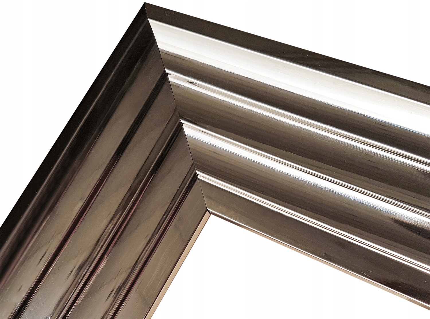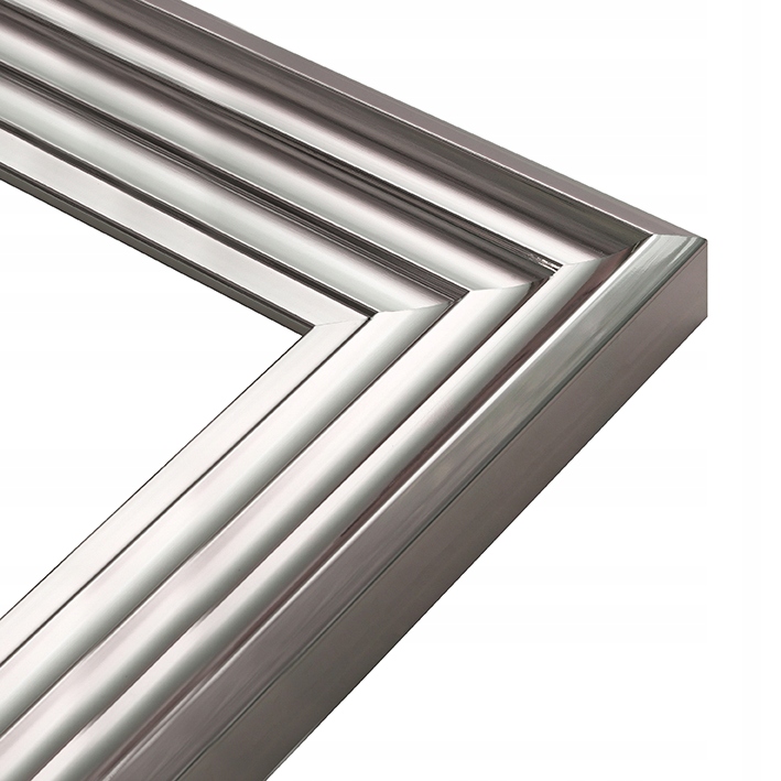 Фоторамка на стіні. Широка, струнка рамка в сріблястому блиску. Ступінчастий профіль, цікавий ефект відбиття світла під різними кутами. Каркас виготовлений з високоякісних термопластичних смуг, покритих міцним декором. До складу входить панель з оргскла (тобто акрилове скло) і плита HDF товщиною 4 мм із заводськими монтажними кронштейнами для горизонтального та вертикального підвішування. Все утримується на висувних пластинах, що дозволяє легко обмінюватися фотографіями, графіками чи плакатами.