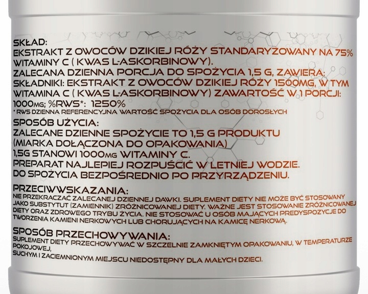 Одна порція, тобто 1500 мг, містить 1000 мг чистого, природно отриманого з шипшини.