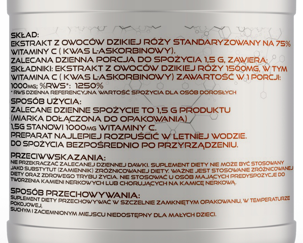 500 грам = 330 порцій, кожна з яких містить 1000 мг природного вітаміну С