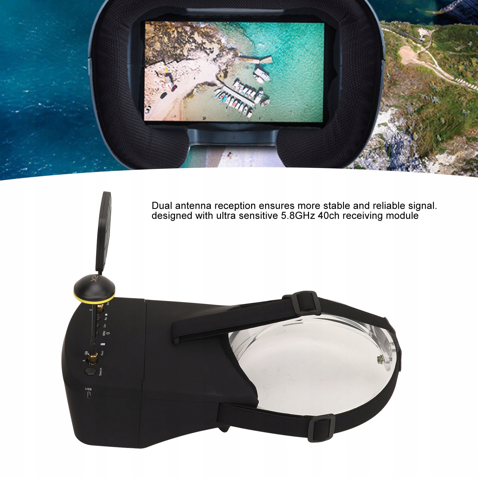 1. 5 дюймів: ці окуляри FPV використовують 5-дюймовий РК-дисплей з роздільною здатністю 800 x 480 пікселів і високою яскравістю HD. Подвійна антена забезпечує більш стабільний і надійний сигнал.