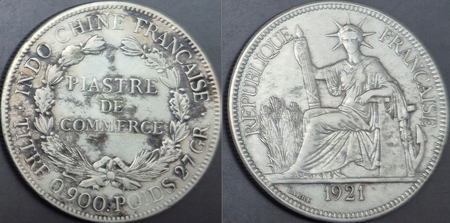 Французький Індокитай 1 піастр 1921 срібло 27 грамів
