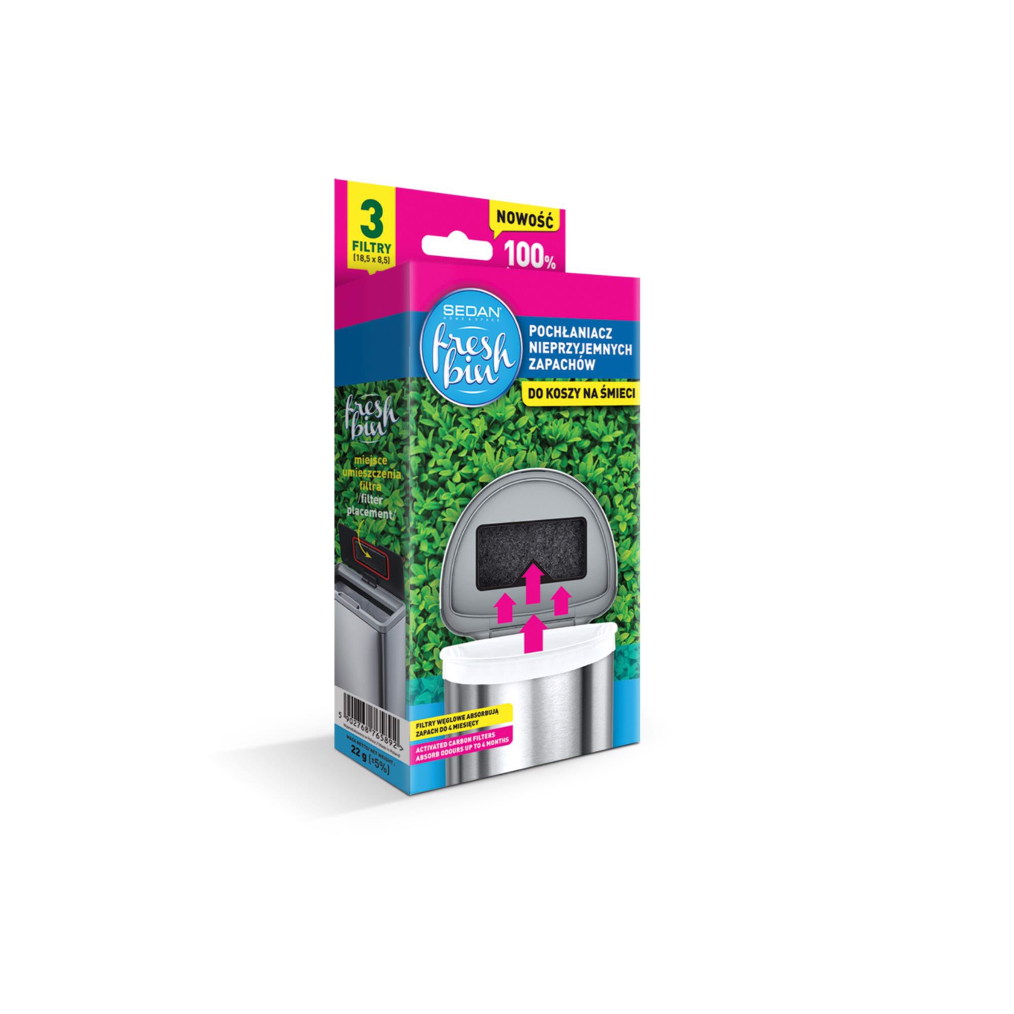 Поглинач запаху FreshBin для сміттєвих баків і урн-шаф, де ми збираємо сміття. Фільтри FreshBin оснащені спеціальним монтажним набором, тому їх можна легко встановити в будь-який сміттєвий бак. Вбирає неприємні запахи близько 4 місяців. Продукт FreshBin містить три вугільні фільтри, які ефективно поглинають запахи з домашніх, готельних, домашніх чи офісних сміттєвих баків, а також баків для використаних підгузників і компостних баків.