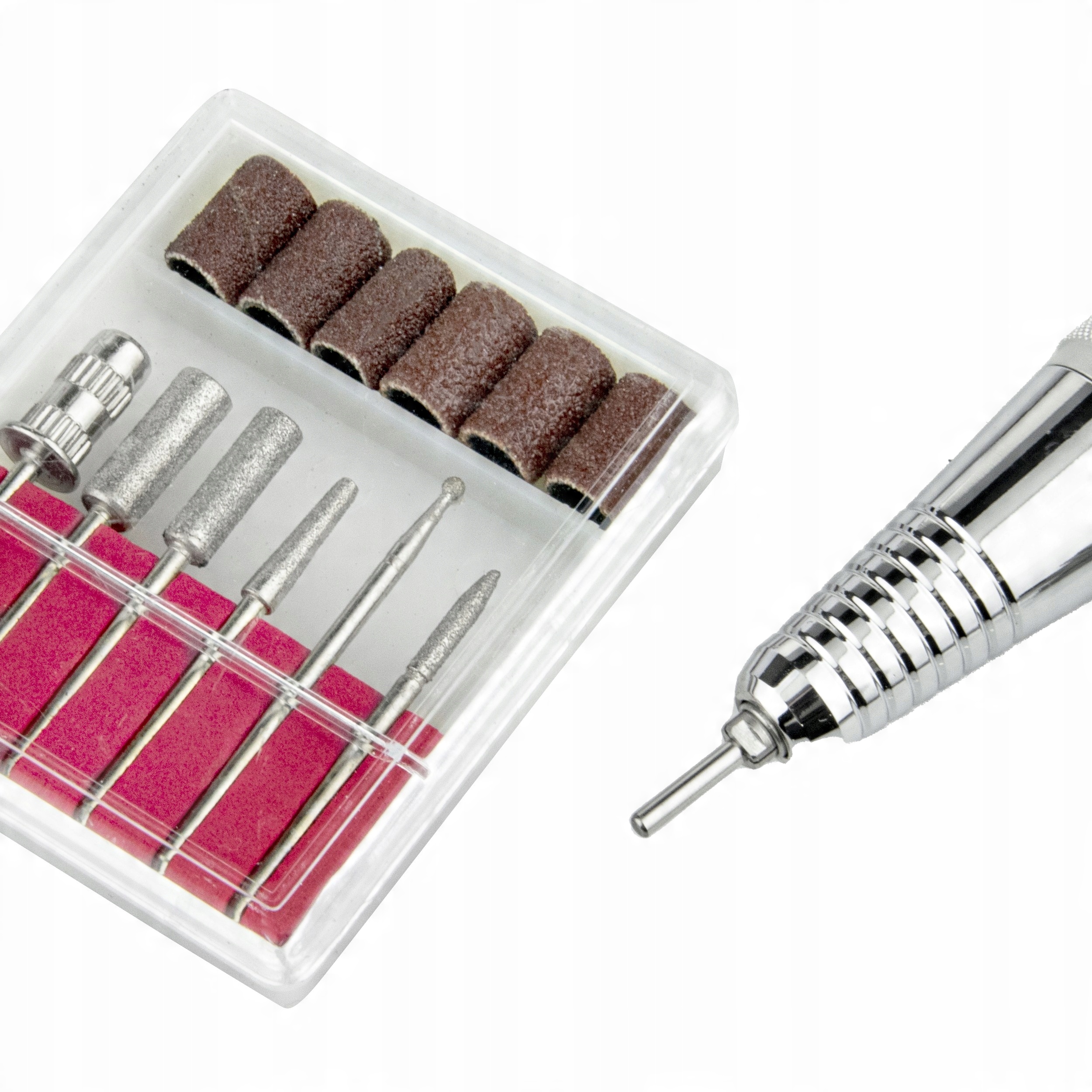 Фрезер дозволить вам підготувати нігті до манікюру - видалить кутикулу, гель, акрил або гібрид, розгладить нігтьову пластину, вкоротить, матує і підготує до подальших процедур. Система twist-lock робить заміну фрези легкою та швидкою. Він підходить для більшості фрез, доступних на ринку - усіх, що використовуються для популярних моделей фрезерних верстатів, таких як JD, CT або Marathon. У комплект також входить підставка для ручок і набір з 4 стартових фрез. Доходить до 25 тисяч. оборотів за хвилину та має 2 напрямки обертання.