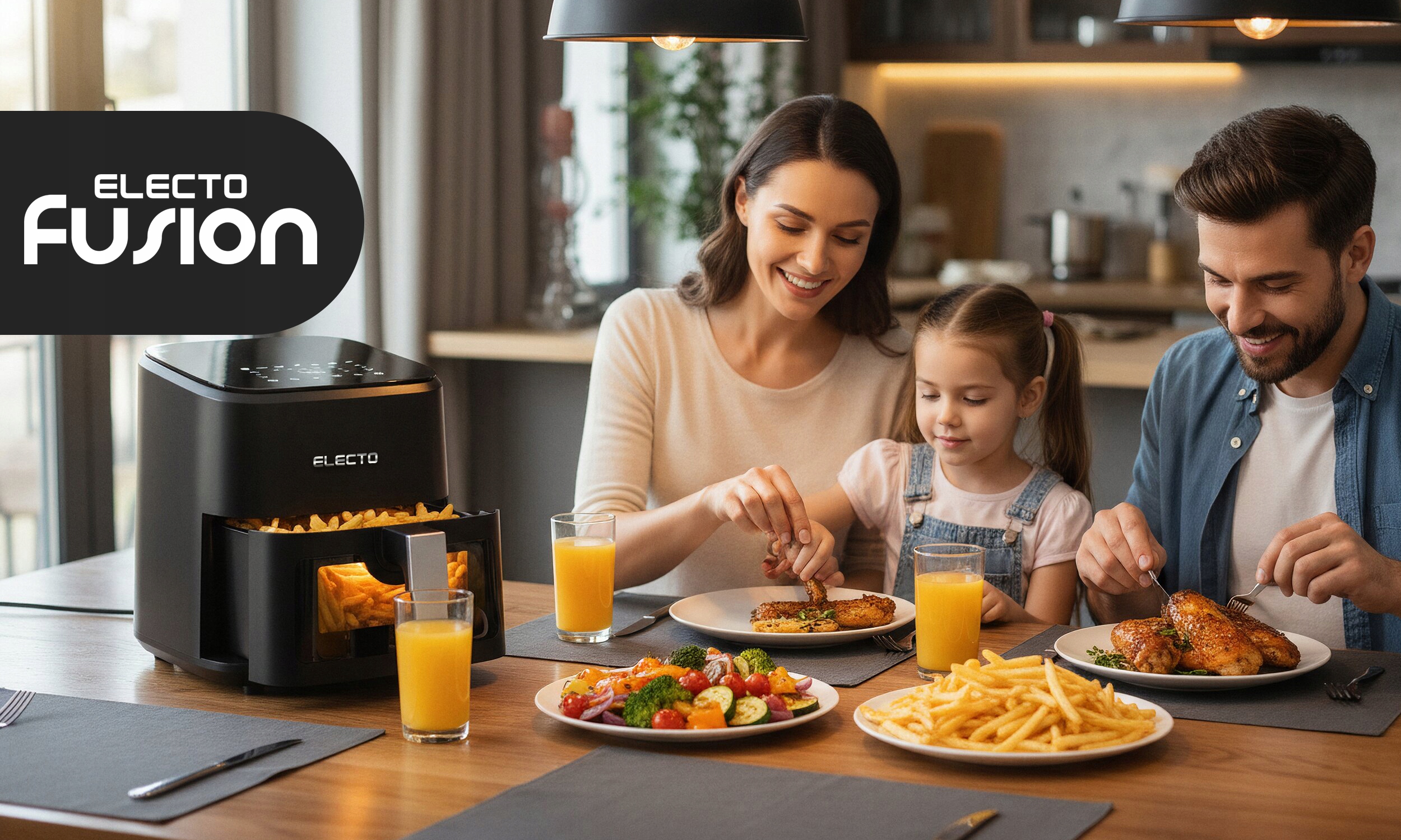 - Пристрій зменшує кількість жиру до 80%, пропонуючи здоровішу альтернативу традиційному смаженню. Це ідеальний спосіб швидкого приготування поживних страв для всієї родини.