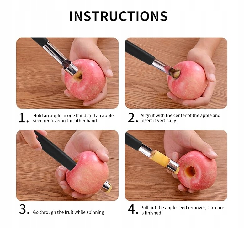 Кісточка для яблук — це розумний помічник для видалення яблук та інших фруктів. Завдяки сталевому круглому наконечнику та стійкій неслизькій ручці вирізати серцевину з яблука буде легкою грою.