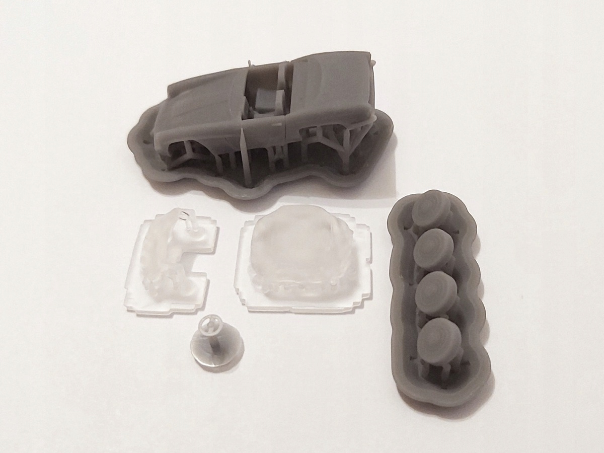 Модель знаходиться на підносі, захищеному та зміцненому ультрафіолетовим світлом. Ви повинні самостійно зрізати опори за допомогою маленьких гострих плоскогубців. Опори для вікон і даху слід відпиляти (відрізання плоскогубцями може спричинити напругу смоли та тріщини у вікнах).