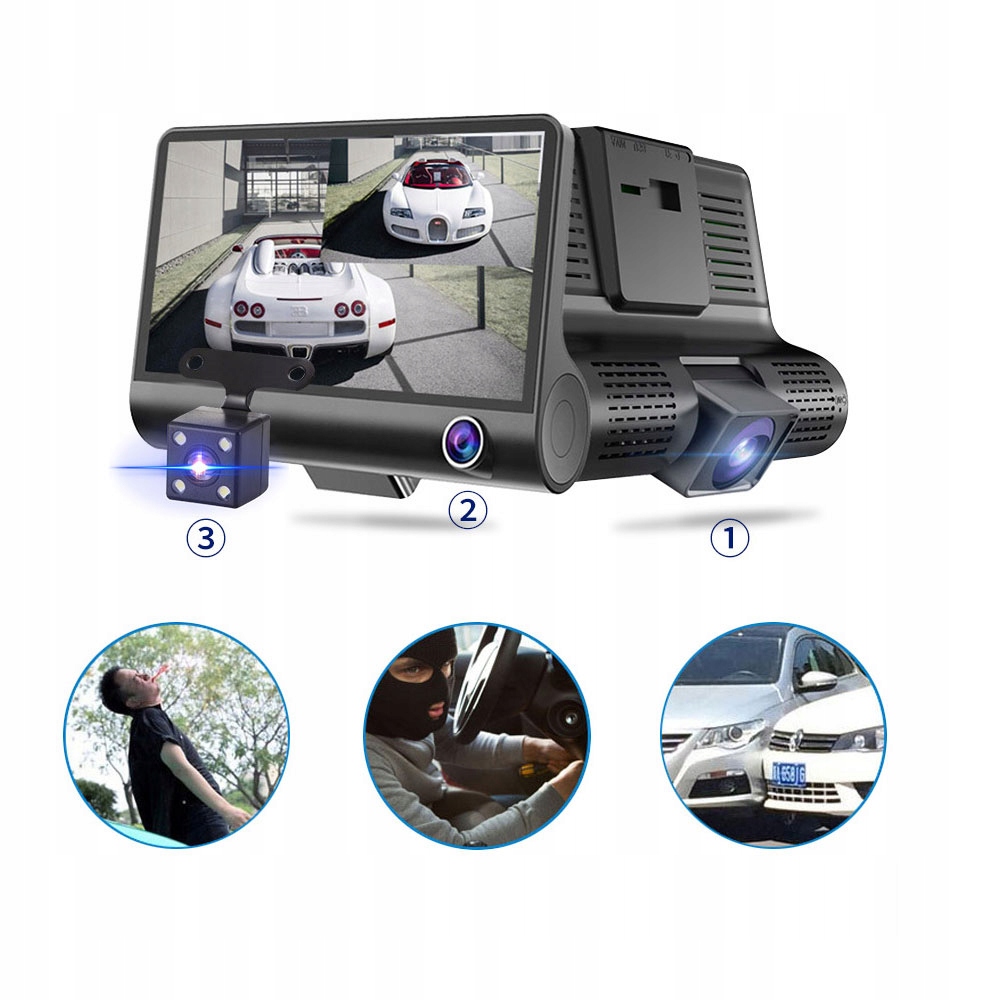 FULL HD РЕВЕРСІЙНИЙ DVR 3 КАМЕРА 140° УЛЬТРАШИРОКОКУТНА FULL HD 1080P