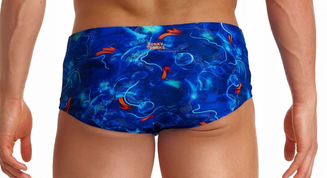 Наряд Funky Trunks у найвідомішому крої шорт із шириною борту близько 16 см є бестселером цього австралійського бренду. Зручні плавки Funky Trunks мають прострочку в передній частині костюма та підкладку для ще кращого розташування на тілі. На талії є шнурок для регулювання ширини. Оздоблення ніжок розроблено для максимального комфорту з повною посадкою.