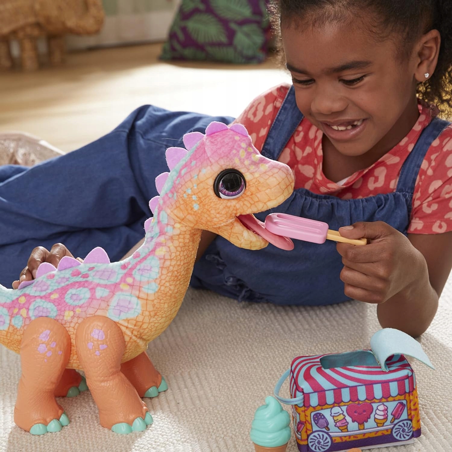 4- Інтерактивні тварини з дино: Чарівна Саллі - це плюшева іграшка динозавра, яка рухається, звучить і любить їсти своє морозиво.
