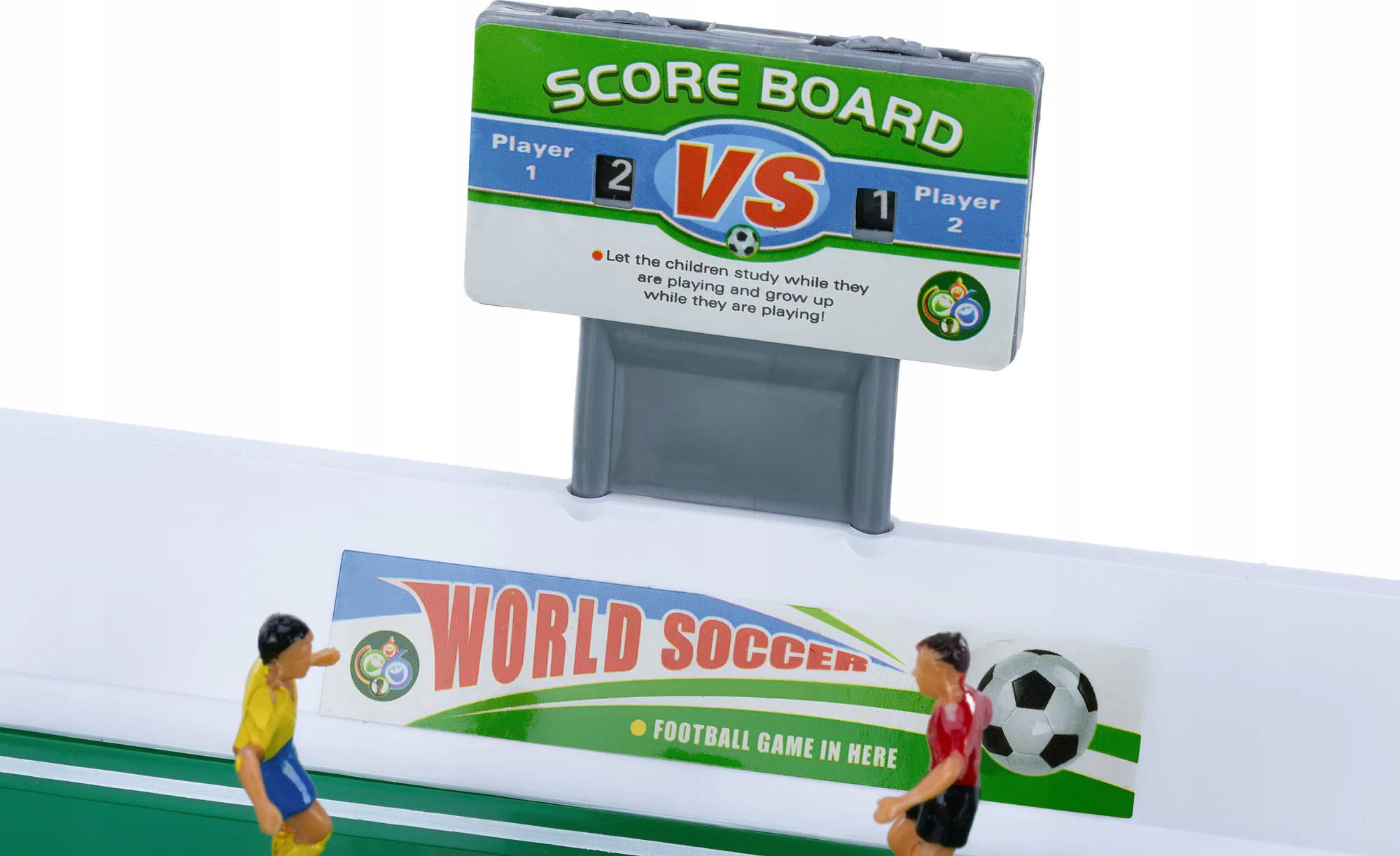- набір включає: футбольне поле, 22 гравці, включаючи двох рухомих воротарів, два флагштоки, наклейки з прапорами країн, табло