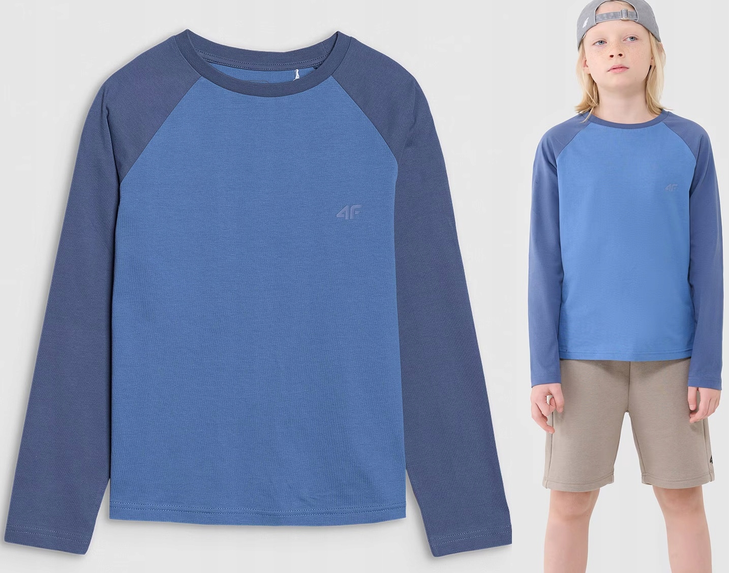Лонгслів для хлопчиків 4F. Блузка з довгим рукавом з приємного на дотик матеріалу звичайного крою - практичний варіант одягу для хлопчика. Цікаві кольори урізноманітнюють звичайну укладку. Бавовняний матеріал забезпечує комфорт у кожному русі.