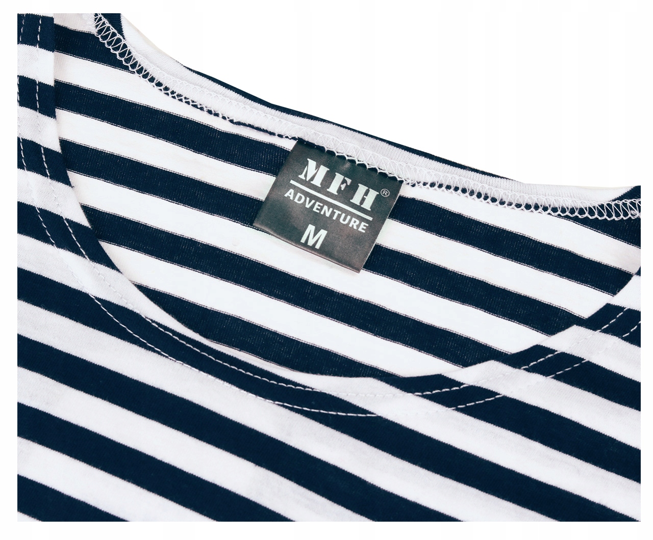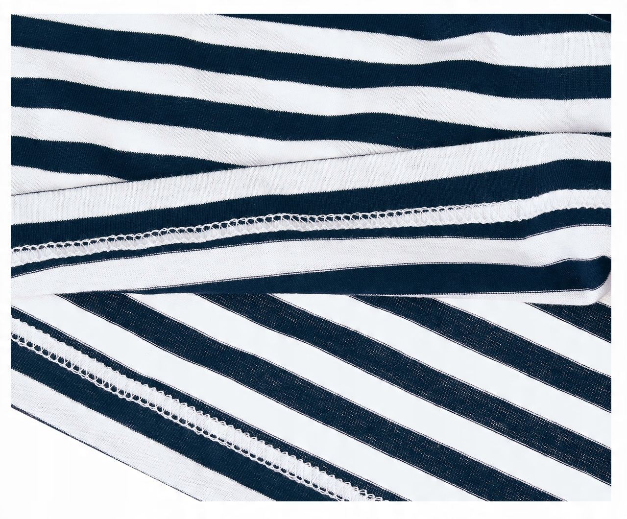 Ідеальний крій, відмінно сидить. Виготовлений зі 100% бавовни. Має вузькі горизонтальні смужки білого та темно-синього кольорів. Це характерний візерунок для військово-морського флоту.