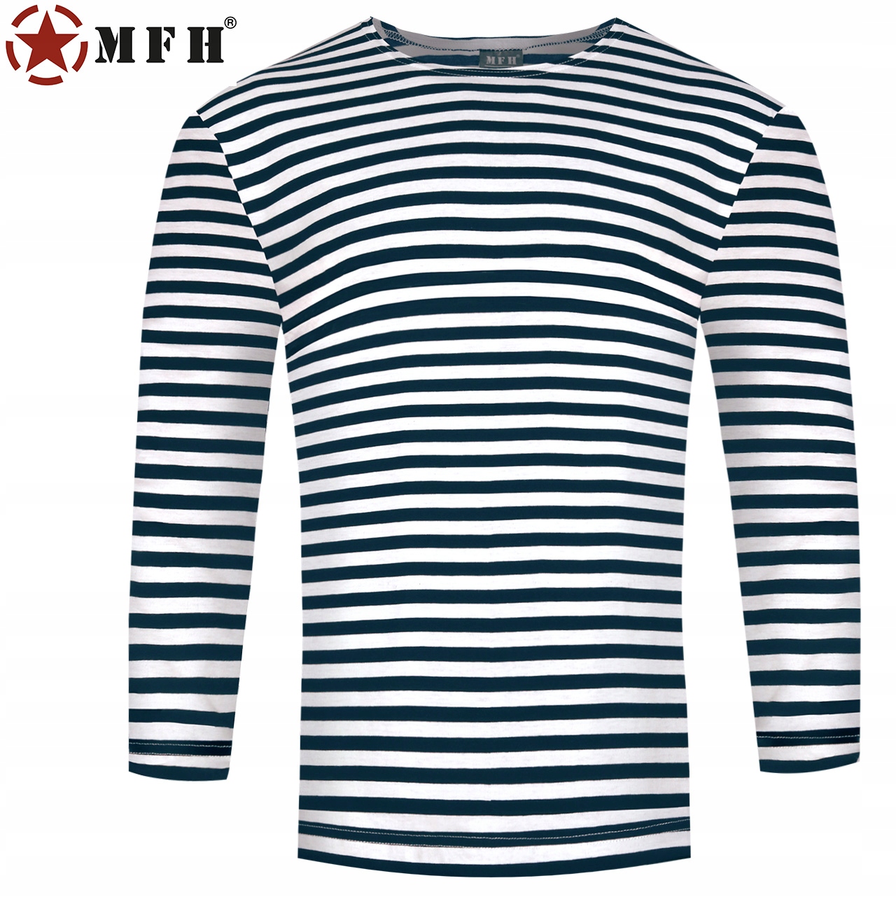 Ідеальний крій, відмінно сидить. Виготовлений зі 100% бавовни. Має вузькі горизонтальні смужки білого та темно-синього кольорів. Це характерний візерунок для військово-морського флоту.