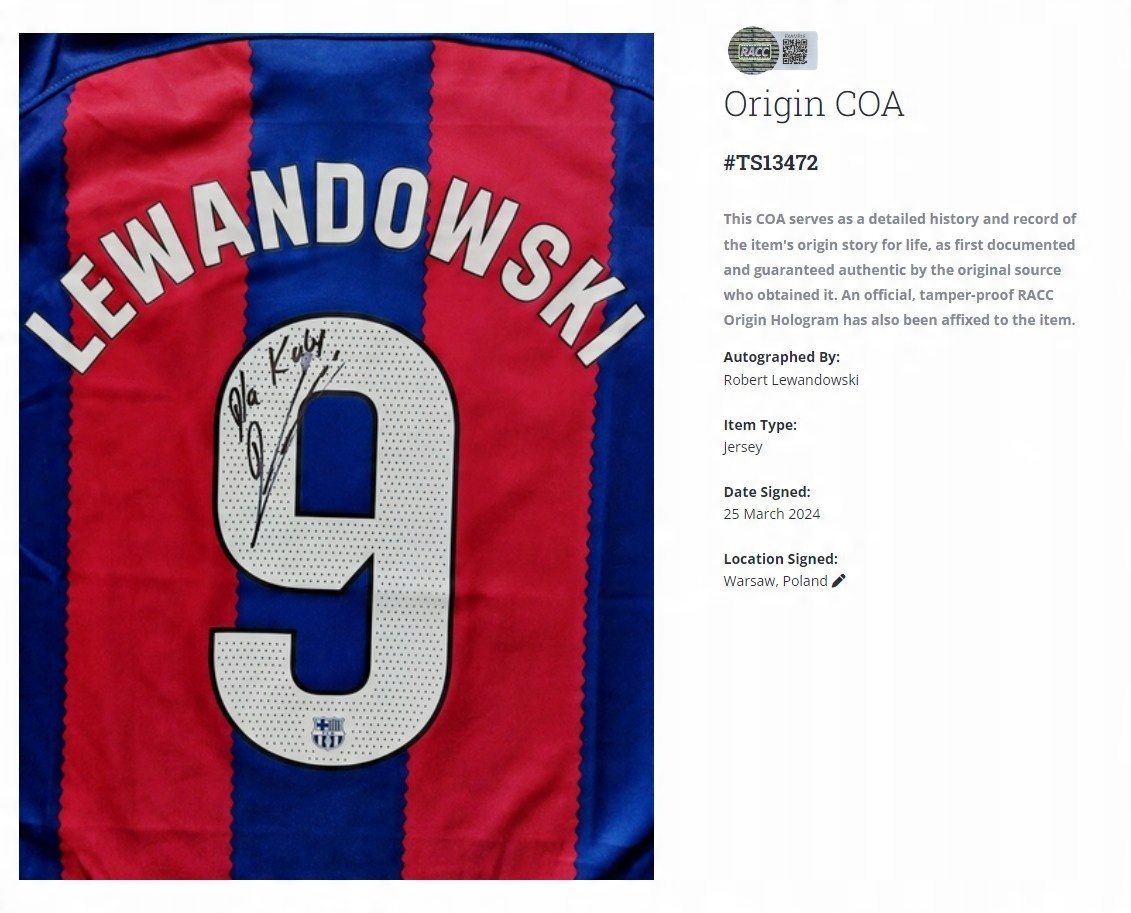Футболка ROBERT LEWANDOWSKI FC BARCELONA з АВТОГРАФОМ + СЕРТИФІКАТОМ