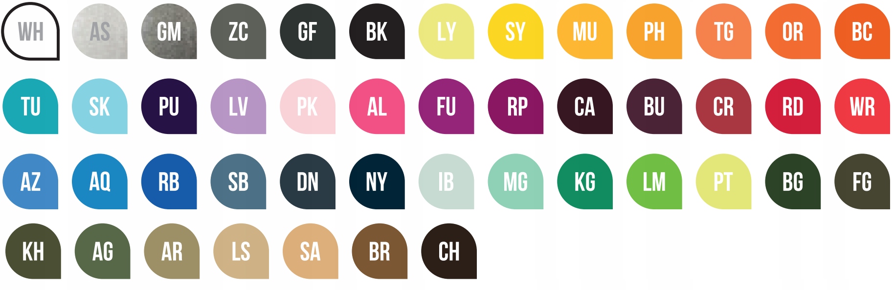 Широка палітра кольорів (понад 50 кольорів на вибір у деяких розмірах) у пропозиції з мініатюрою двох чоловіків.